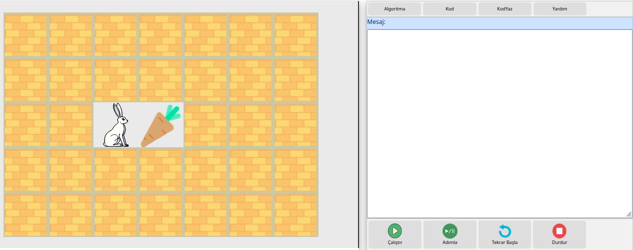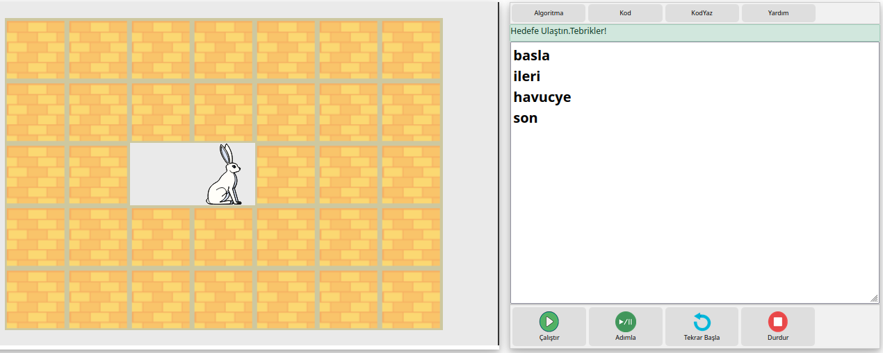 Aşağıda problemin algoritması yazıldığı görülmektedir. Bu şekilde diğer problemlerin algoritması yazılarak Çalıştır butonuyla test edilebilir.