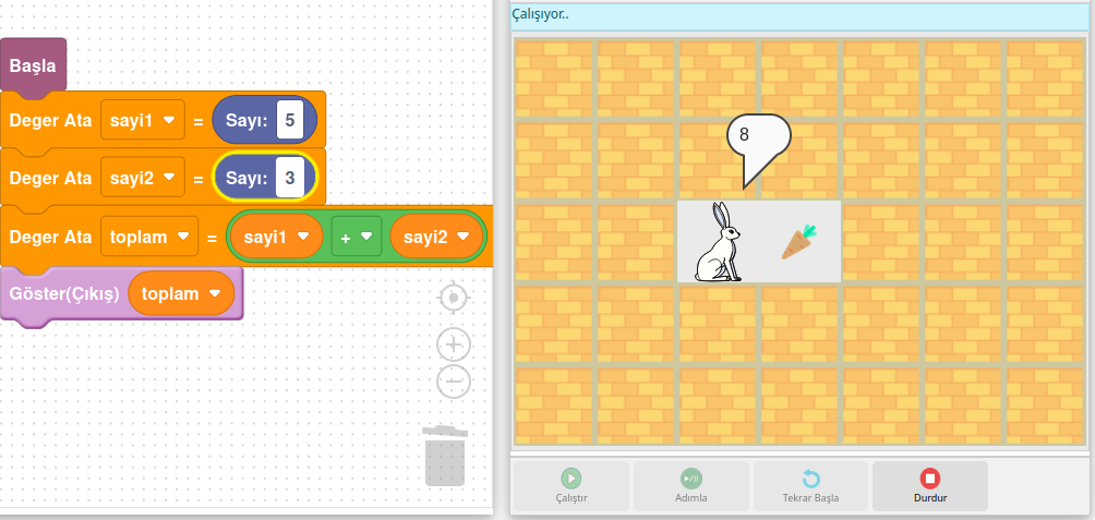 Sabit değer atanan sayi1, sayi2 değişkenlerinin önce toplam işlemini yapan ve toplam değişken sonucunu gösteren(çıktı) programı yazınız.