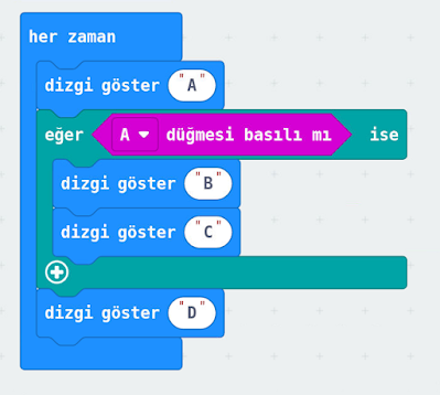 Aşağıda A karar ve D devamlı çalışacak fakat B-C A butonuna basınca çalışacaktır.